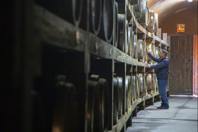산머루농원의 저장고에 들어서면 탄성이 절로 나온다. 유럽의 오래된 와이너리에서 보던 풍경이 눈앞에 펼쳐지는것 같아서다. 저장고에는 3단 높이로 쌓아놓은 오크통이 가득하다. 저마다 이름표처럼 용량과 날짜가 적혀 있어 묵직한 시간이 켜켜이 쌓인 느낌을 준다. 와이너리 체험은 이 저장고는 물론이고 실제 생산 시설까지 함께 둘러볼 수 있어 머루가 와인으로 변하는 과정을 자연스럽게 이해하게 된다.