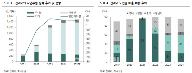 안 연구원은 “2025년 매출액은 유상좌석공급거리(ASK) 증가에도 운임 하락으로 전년 대비 1% 증가에 그칠 것으로 예상하고, 이에 따라 영업이익도 8% 감소한 1500억원(영업이익률 10.2%)로 추정한다”고 전했다.