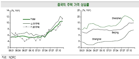 이승우 신영증권 연구위원은 "중국 주택가격 상승세 둔화조짐을 전반적인 현상으로 보기는 어렵다"고 말했다. 기존 주택이나 베이징, 상하이 지역의 주택가격에는 아직 큰 이상을 발견하기 어렵다는 것.