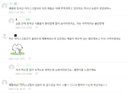 하지만 진씨의 걱정처럼 해외 직구 간식의 안전성은 끊임없이 논란에 휩싸이고 있다. 최근에는 메롱바에서 청색 1호, 황색 4호, 적색 40호와 같은 타르계 색소가 사용된 것으로 확인됐다. 이 타르계 색소들은 국내 식품업계에서는 사용을 피하는 성분인데다, 유럽연합(EU)에서 천식 유발 물질로 지정됐거나 미국에서는 단계적으로 규제를 받고 있다. 이 같은 사실이 알려지자 학부모들도 충격에 빠졌다. 서울 성북구에 사는 초등생 학부모 홍연주(48)씨는 “아들에게 몇 번 사줬는데 이런 게 팔리다니 황당하다”고 했다.