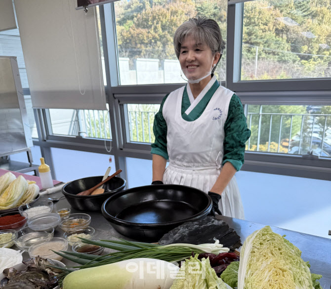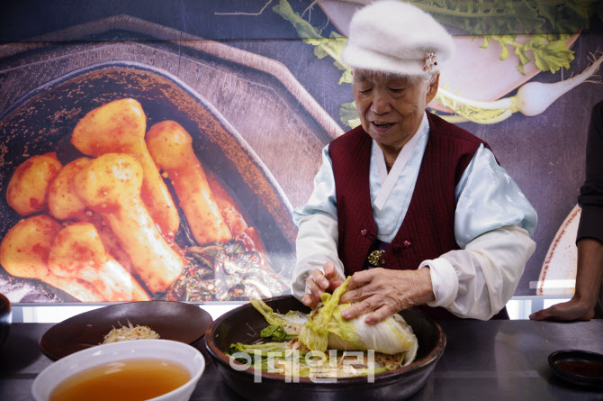 | | 대한민국 식품명인 제76호 오숙자 명인이 시연하는 반지 김치 (사진=김명상 기자) |