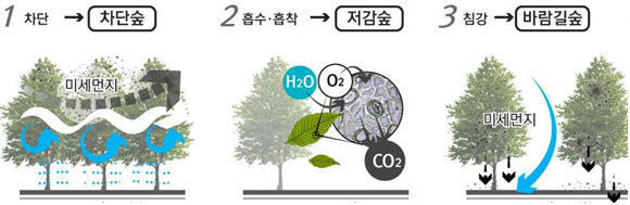 이렇게 조성된 3기 신도시 공기정화 도시숲은 연간 경유차 6000대가 내뿜는 양인 1만kg 수준의 미세먼지를 줄이고 이산화탄소 등 온실가스 2500톤 이상 흡수 효과를 보일 것으로 기대된다.
