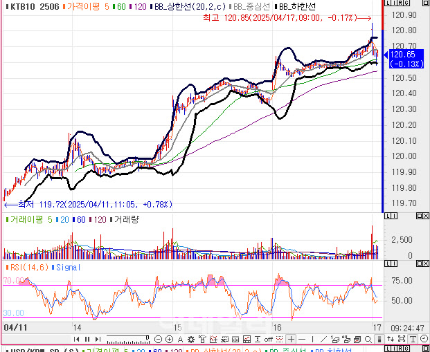 한편 국고채 현물 금리는 1bp 내외 상승 중이다. 엠피닥터에 따르면 민평3사 기준 장내 국고채 3년물 금리는 전거래일 대비 1.4bp 오른 2.346%, 10년물 금리는 전거래일 대비 1.7bp 오른 2.637%를 기록했다. 30년물 금리는 1.6bp 오른 2.471%를 보인다.