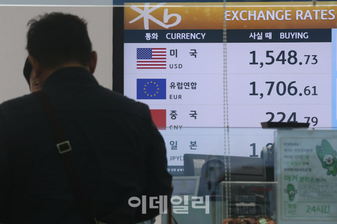 [이데일리 이영훈 기자] 미국 관세 정책 불확실성 속에 1,480원대 후반까지 치솟는 가운데 9일 오후 인천국제공항 2터미널에서 한 여행객이 환전을 하고 있다.