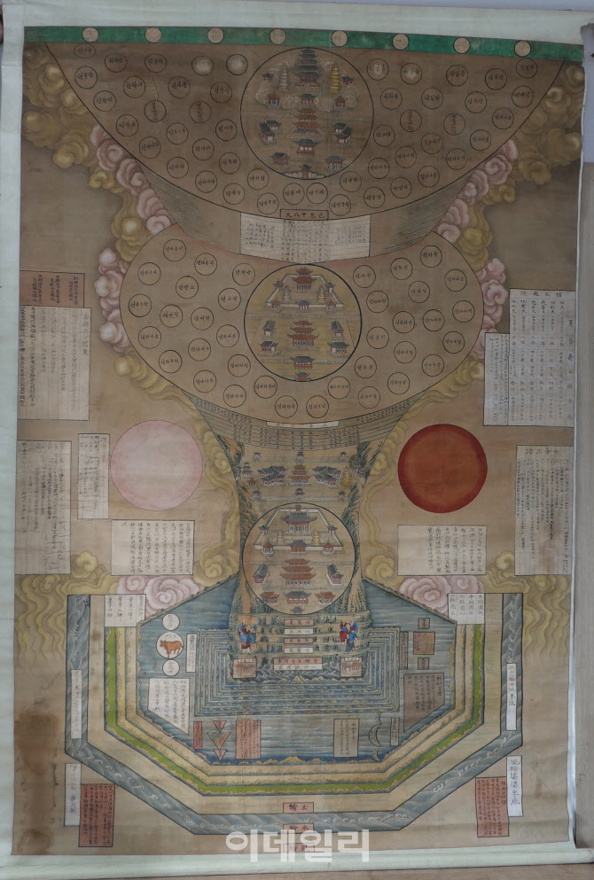 세로 239.5cm, 가로 162cm의 화면을 크게 3단으로 구분해 각각 부처, 하늘, 인간을 뜻하는 ‘무량천계’(상단), ‘도솔천계’(중단), ‘인간계’(하단)를 배치했다는 점이 특징이다. 이는 불계·천계·인계의 삼계 하늘이 하나이고 부처·하늘(하날님)·인간의 마음도 하나라는 ‘불천심일원’의 교리를 표현한 것이다. 제작 기법과 표현 양식에 근대기 화풍이 잘 반영돼 있다는 평가다.
