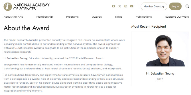 한편, 승 교수는 미국 매사추세츠공과대학교 뇌인지과학과·물리학과 교수를 거쳐 미국 프린스턴대에서 뇌과학연구소·컴퓨터공학과 교수로 연구활동과 인재 양성에 힘쓰고 있다. 이재용 회장의 ‘영입인재 1호’로 삼성전자 DX부문 삼성리서치 글로벌R&D협력담당 사장도 지낸 바 있다.