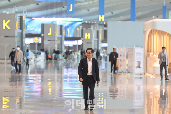 [이데일리 이영훈 기자] 김동연 경기도지사가 9일 인천공항 2터미널에서 '제21대 대통령선거' 출마 선언을 위해 이동하고 있다.