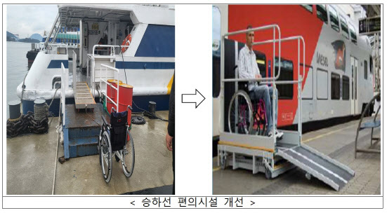 올해 해수부는 교통 약자가 휠체어에서 내리지 않은 채로 여객선을 승·하선할 수 있는 전동리프트를 지원하는 ‘교통약자 승하선 편의시설 지원사업’을 새롭게 추진한다. 해수부는 앞서 올해 주요업무 추진계획을 밝히며 연안여객선 이용객들의 편의 증진을 위해 교통 약자 지원시설 설치, 여객선 운임지원 제도 등 개선에 나서겠다고 한 바 있다.
