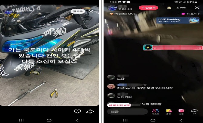 또 A군은 라이브 방송을 하며 폭주족들이 모이는 장소와 시간을 실시간으로 공유했고 경찰의 단속 장소도 알려주며 범행을 돕기도 했다.