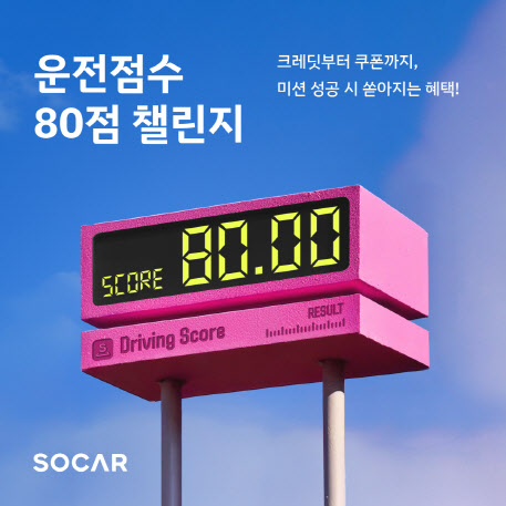 김동훈 쏘카 유저성장그룹장은 “쏘카 사고 데이터와 운전점수 분석 결과 80점 이상이면 교통사고율이 30% 감소하는 것으로 나타났다”며 “이번 챌린지가 안전운전 문화를 확산하는 한편 실질적인 교통사고 감소로 이어질 수 있도록 노력할 것”이라고 말했다.