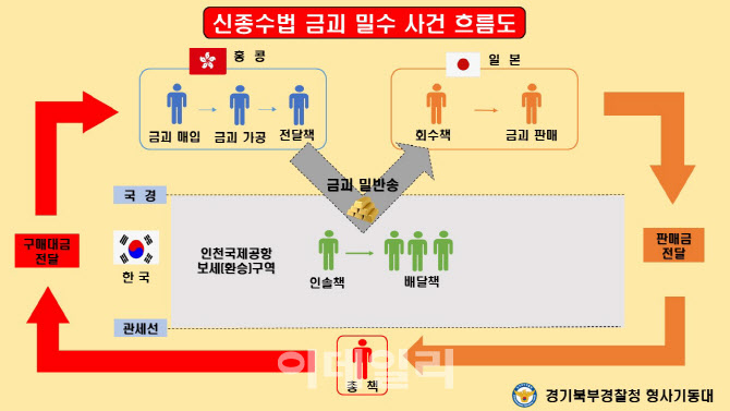 경찰은 홍콩에서 반입된 금괴가 미신고 상태로 일본으로 출국하는 자들을 통해 반송된다는 첩보를 입수해 수사에 착수했으며 관세청과 공조해 금괴 5개(5.5㎏)를 압수하고 범죄수익금 환수 절차를 진행할 계획이다.