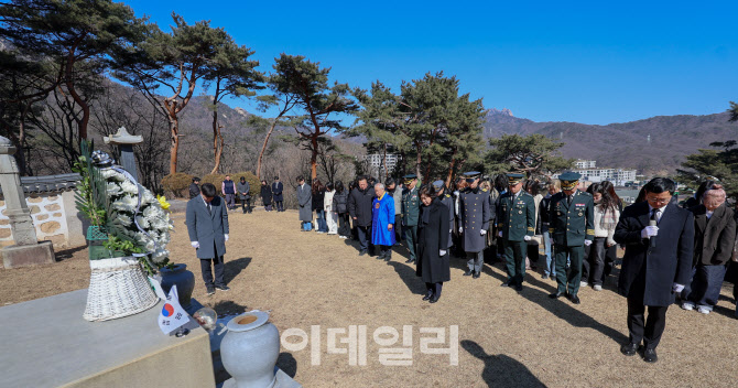우선 강정애 국가보훈부 장관이 24일 서울 수유 국가관리묘역에 안장돼 있는 민족대표 33인 중 한 명인 손병희 선생 묘소를 찾아 헌화·참배했다. 이 자리에는 육군사관학교 생도와 학생 등 40여 명이 함께했다.