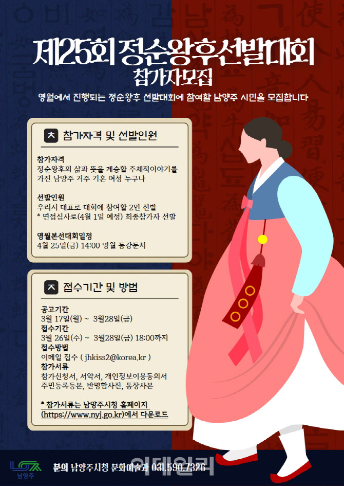 시는 이번 행사를 통해 정순왕후의 삶과 정신을 자신만의 이야기로 풀어낼 수 있는 시민 2인을 발굴할 계획이다.