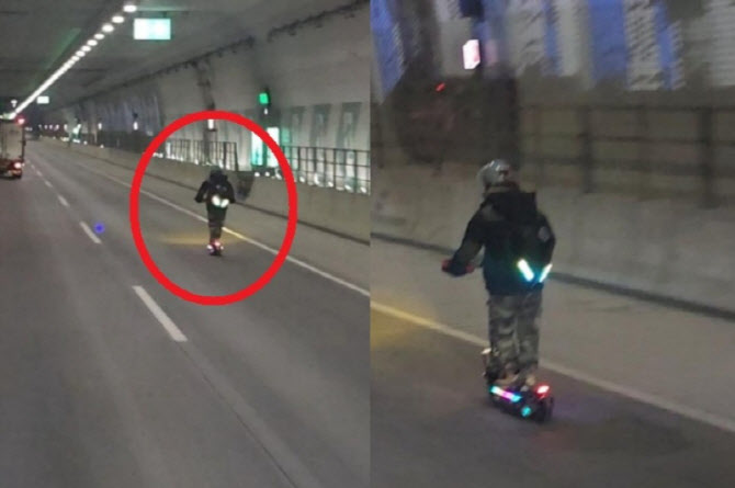 공개된 영상 속에는 한 터널 안에서 전동킥보드 운전자는 헬맷과 불빛이 나오는 가방을 착용하고 전동 킥보드에도 LED 불빛이 나오도록 해 존재감을 알리고 있다. 해당 운전자는 터널 내부 가장 바깥 차선을 따라 주행 중이지만 어쩐지 위태로운 모습이다.