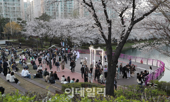 송파구(서강석 구청장)는 2일부터 6일까지 5일 동안 서울 대표 벚꽃 명소인 석촌호수에서 ‘호수벚꽃축제’를 개최 했으나 꽃샘추위로 벚꽃 개화가 늦어져 8, 9일 꽃망울이 절정을 이뤘다. (사진=송파구)
