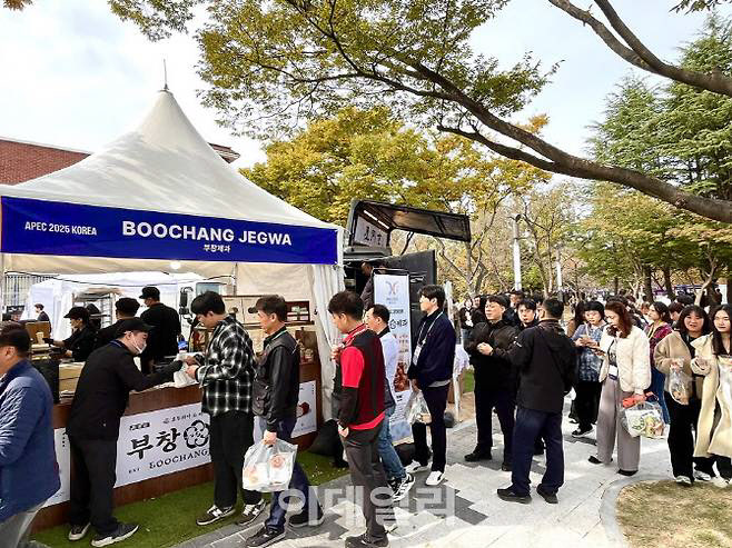 부창제과는 1990년대 문을 닫았던 경주의 전통 제과점을 외손자인 F&B기업 FG 이경원 대표가 복원해 다시 세운 브랜드다. 부창제과는 이번 APEC 기간 ‘K푸드 스테이션’에서 부스를 꾸려 하루 약 1500명에 달하는 외신 기자와 행사 관계자에게 호두과자를 무료로 제공했다. 행사장에 근무 중인 경찰·소방 인력에게도 간식으로 전달해 따뜻한 디저트 외교를 연출하기도 했다.