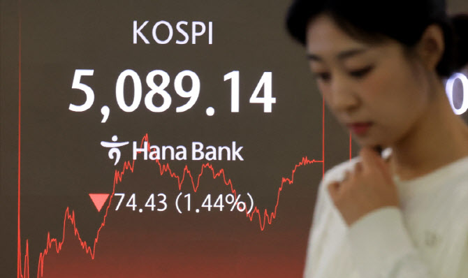 6일 엠피닥터에 따르면 코스피는 전 거래일 대비 74.43포인트(1.44%) 내린 5089.14에 마감했다.