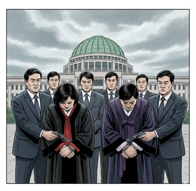 국회 법사위는 이날 전체회의를 열고 법왜곡죄를 신설해 판·검사 등이 위법 또는 부당한 목적으로 법령을 의도적으로 잘못 적용한 경우 10년 이하의 징역에 처하도록 하는 내용의 형법 개정안을 의결했다. 국민의힘은 “판·검사가 수시로 고발되는 시대가 올 것”이라고 강력 반발하며 표결에 불참했다.