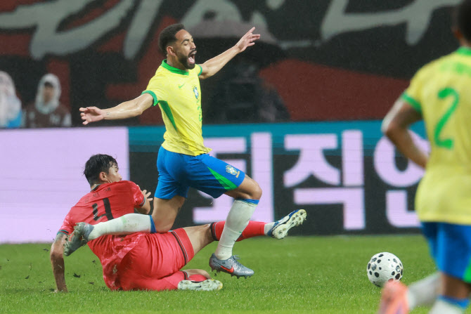 국제축구연맹(FIFA) 23위인 한국은 이번에도 브라질(6위)에 호되게 당했다. 점유율 41% 대 59%, 슈팅 수 4회 대 14회, 유효 슈팅 수 1회 대 7회 등으로 크게 밀렸다.