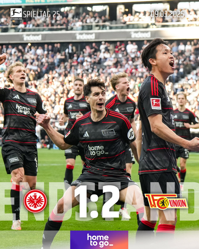 우니온 베를린은 전반 13분 프랑크푸르트의 미키 바추아이에게 선제골을 내주며 끌려갔다. 하지만 후반 17분 코너컥 상황에서 나온 레오폴드 퀴르펠트의 헤더골로 동점을 만든 뒤 후반 33분 정우영의 결승골로 극적인 역전승을 일궈냈다.