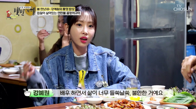 이날 강예원은 허영만에게 “저는 맛있는 거 먹을 때 행복하다. ‘오늘 뭐 먹지’ 이 생각할 때 행복하다”고 말해 눈길을 끌었다. 강예원은 “맛집 가는 걸 제일 좋아해서 허영만 선생님을 너무 만나고 싶었다. 지식은 없고 먹을 줄만 알아서 음식에 대해서 공부도 하고 싶고, 시집가려면 제철 음식도 잘 알아놓으면 좋지 않나”라고 전했다.