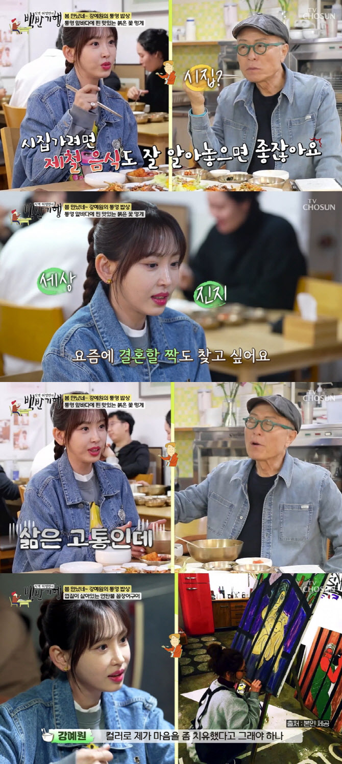 이어 곰장어 가게로 향한 두 사람. 허영만은 취미를 물었고 강예원은 직접 그린 그림을 보여주며 “제가 나온 영화에 포스터로도 썼다”고 전했다. 취미로 유화를 선택한 이유에 대해 강예원은 “배우를 하면서 삶이 너무 들쑥날쑥 불안했다. 그림을 배운 적은 없는데 유화 그림을 그리면서 그 색깔로 마음을 치유했다”고 말했다.