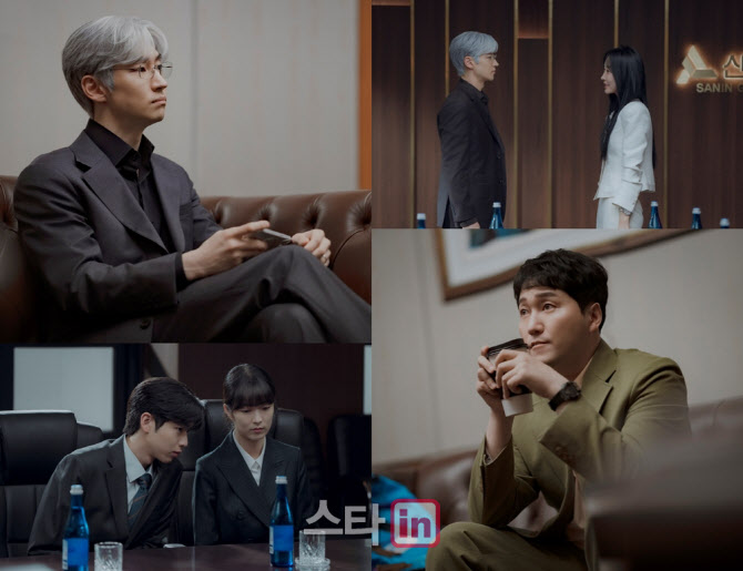 이 가운데 드라마 측이 9일 공개한 스틸컷에는 산인 건설 매각 전쟁에 뛰어든 윤주노와 M&A 팀 오순영(김대명 분), 곽민정(안현호 분), 최진수(차강윤 분)의 사투가 담겨 있다. 기업의 가치를 올리기 위해 건설법 완화 여부 확인부터 산인 건설을 원하는 거래처 선정까지 각고의 노력을 기울이는 M&A 팀 팀원들의 모습이 긴장감을 자아낸다.
