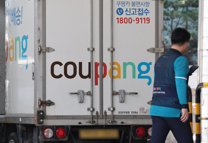 서울 시내의 한 물류 캠프에 쿠팡 배송 차량이 주차돼 있다.(사진=연합뉴스)